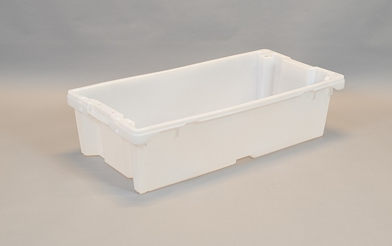 Egenskaber: Udvendige håndtag. Bund og sider er helt glatte. Tomme kasser kan sættes ind hinanden.
